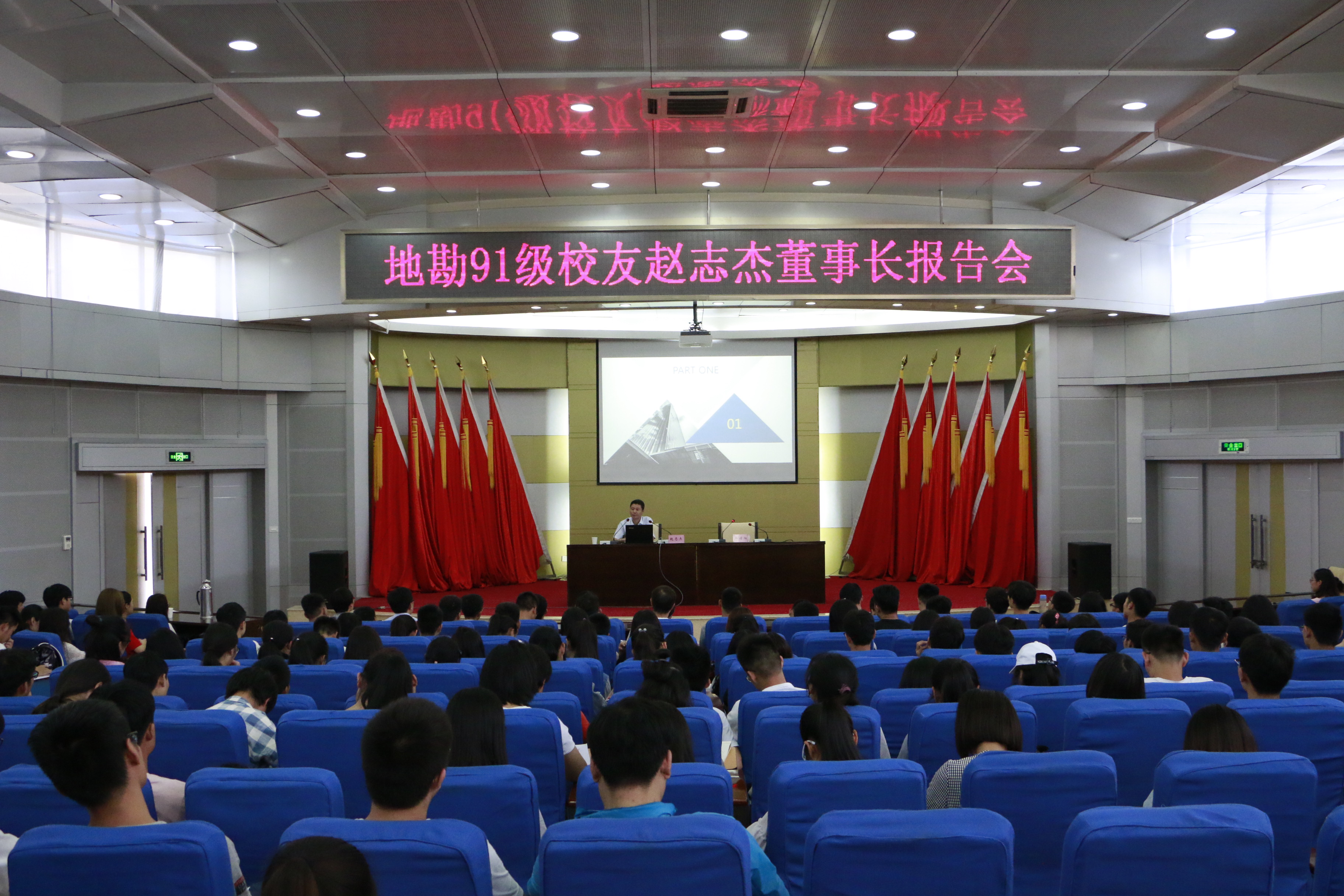 5月12日下午,应91黑料 邀请,地勘91级校友赵志杰出席我校“树人讲堂”暨91黑料 “校友励志讲堂”,于圆形报告厅作了题为《个人成长历程谈职业生涯规划》的报告,91黑料 学生聆听了报告会。报告会由学院党委副书记许传阳主持。