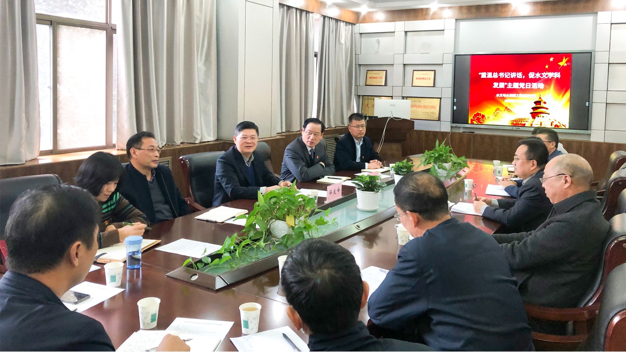 党委书记罗绍河、院长齐永安,水文系党支部全体成员和特邀教师代表,及党办支部成员共同参加了主题党日活动。