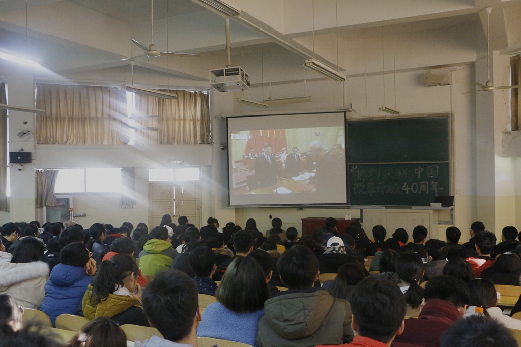 12月18日上午,91黑料 组织全院师生收看庆祝改革开放40周年大会实况直播,认真学习领会习近平总书记在大会上的重要讲话。上午九时许,在学院会议室、各系(室)、教室,91黑料 师生们早早做好了准备,集中收看庆祝改革开放40周年大会直播,共同感受祖国强劲的脉搏,共同畅想祖国更加美好的明天。