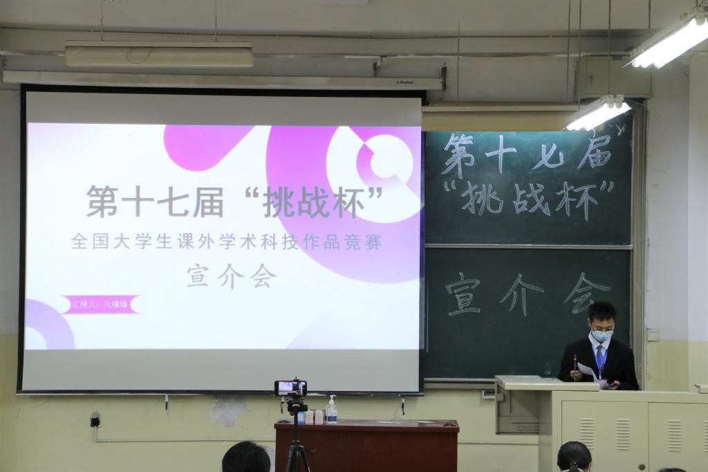 在资环楼103教室举办第十七届“挑战杯”宣介会,本次宣介会以线下展示、线上学习相结合的方式开展,共计一百余人参加本次会议。