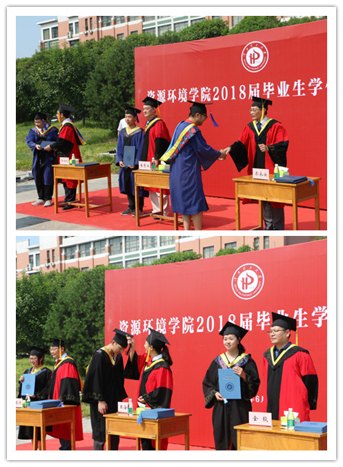 2018届毕业生毕业典礼暨学位授予仪式在学校荷花湖中心广场隆重举行。院党委书记张贵江、院长齐永安、院党委副书记许传阳、副院长王海邻、副院长郑德顺、副院长金毅出席,毕业典礼由院学工办主任郑伟主持。