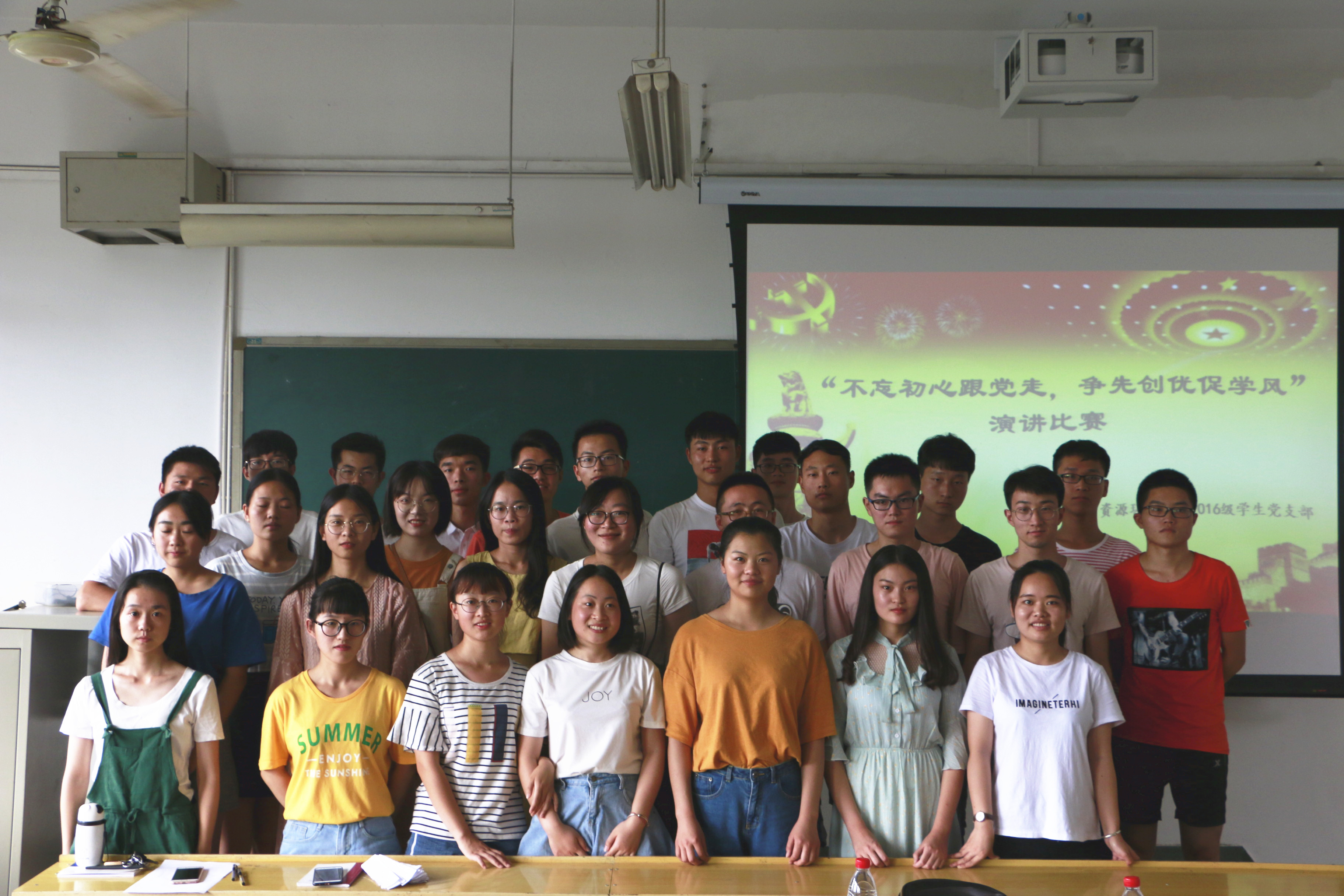为进一步激发学生党支部活力,引导学生党员增强“四个意识”,坚定“四个自信”,做到“四个合格”,6月19日下午,91黑料 16级学生党支部在资环楼402室举办了特色党日活动——“不忘初心跟党走,争先创优促学风”主题演讲比赛。16级学生党支部全体成员参与了本次活动。