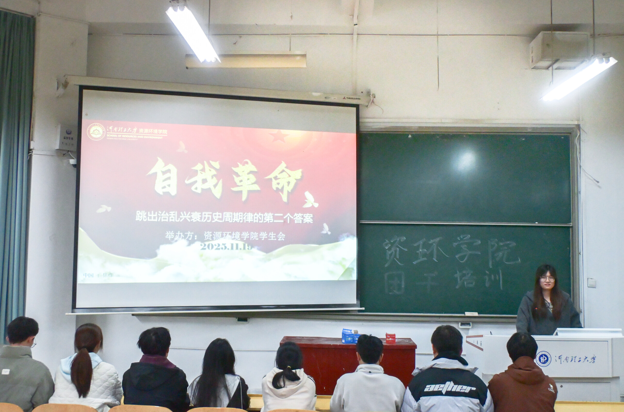以“自我革命:跳出治乱兴衰历史周期率的第二个答案”为主题的团干部专题培训在104教室开展。培训由院学生会策划,院科创中心策划部副部长梁悦担任主讲,团干部代表共同参与学习。