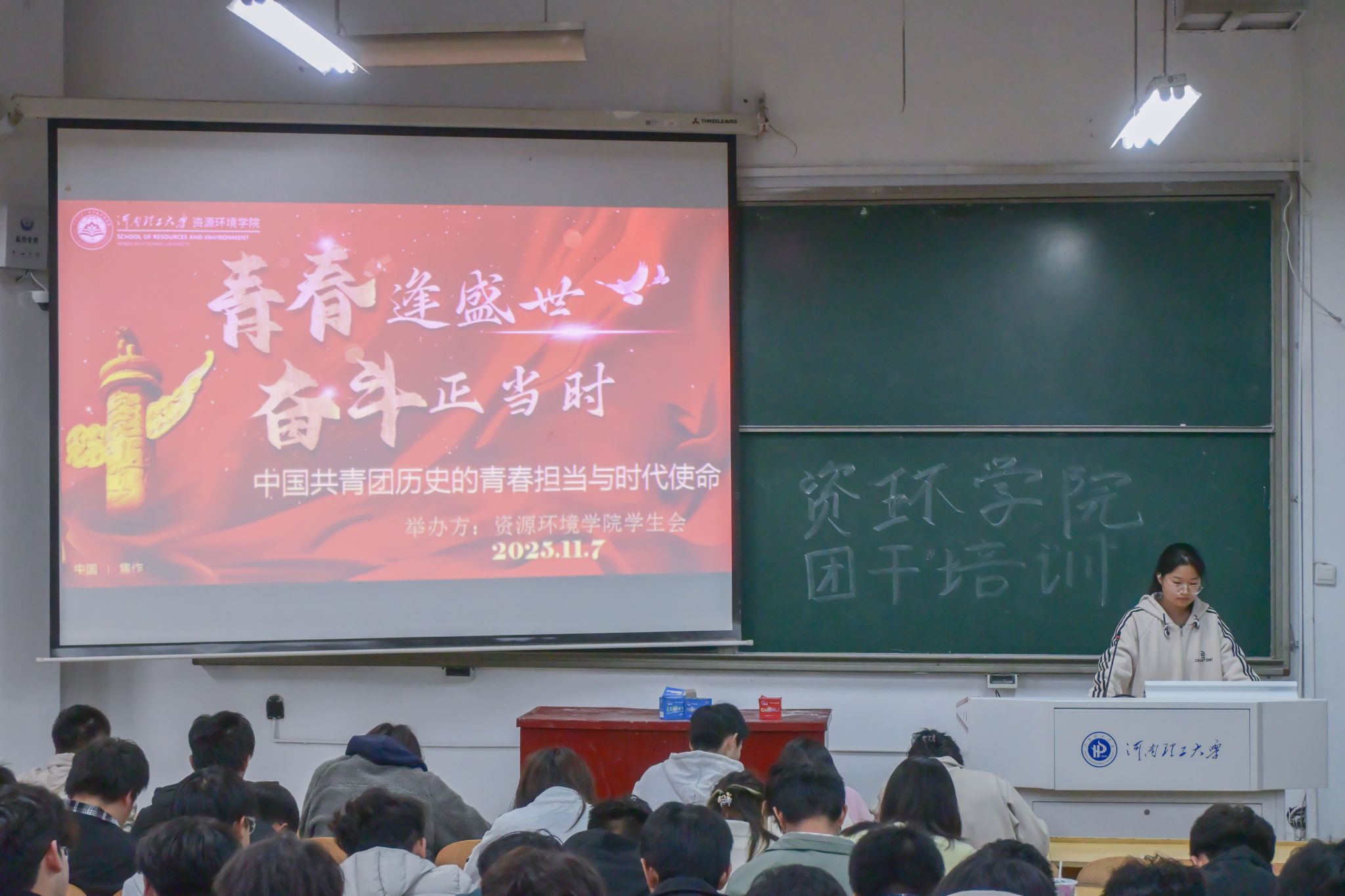 培训伊始,杨婧以共青团百年发展脉络为主线,系统回溯了不同历史时期团组织的核心使命与青春担当。革命年代,团组织引领青年投身民族解放洪流,播撒进步火种;社会主义建设时期,凝聚青年深耕生产一线,为国家工业化、现代化建设筑牢根基;改革开放后,动员青年勇立时代潮头,在创新创业、对外开放等领域锐意进取;步入新时代,团组织聚焦“为党育人、为国育才”根本任务,持续强化青年思想引领、组织凝聚与服务保障。通过详实的历史脉络梳理与鲜活的实践案例分享,在场学子深刻感悟到共青团始终与党同心、与国同向,以青春之力推动时代发展的鲜明特质。