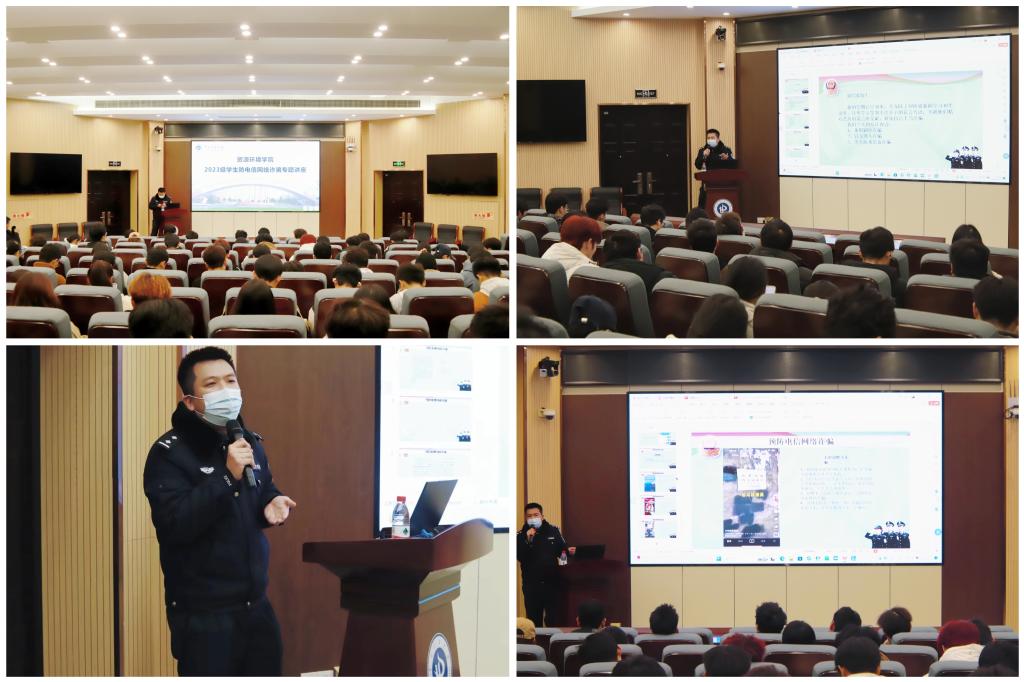 在学院第Ⅰ学术报告厅举办了大学生防电信网络诈骗专题讲座。讲座由焦作市公安局城乡一体化示范区分局的罗警官主讲,2023级新生参加。