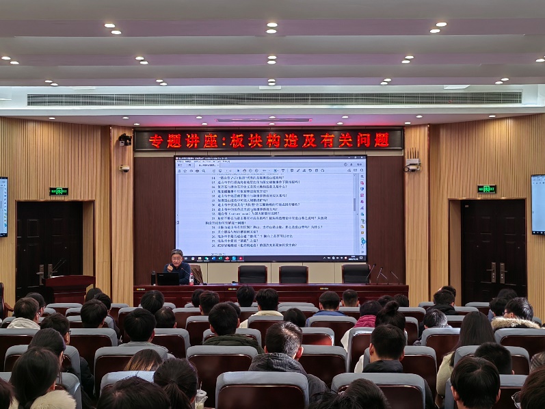 第Ⅰ学术报告厅开展“构造地质学前沿进展”系列讲座和基金申报指导交流会。学院相关老师和学生参加了系列报告,报告会由副院长王海邻教授主持。