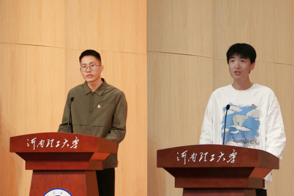 接着,由两位学生代表发言。老生代表武泽印表示,希望学弟学妹们能够传承求真务实的科学精神、探索精神、资环精神,坚定前进信心,用实践擦亮青春底色,成长为引领未来的时代新人。新生代表王文向同学们分享了自己未来大学四年的期待和规划,他表示我们每一名新生都要像植物扎根一样探求哲理,像海绵吸水一样增长真知,用青春来诠释曾经的誓言,用汗水来锻造明日的辉煌。
