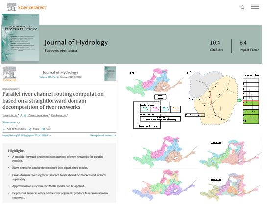 教师刘永和副教授与美国得州大学奥斯汀分校杰克逊地学院的杨宗良教授、北京大学地球空间科学学院的林佩蓉助理教授合作,以共同作者在国际水文学顶刊《水文学杂志》(《Journal of Hydrology》)发表题为《基于一种河网直接分块的并行化河道汇流计算》(《Parallel river channel routing computation based on a straightforward domain decomposition of river networks》)的研究成果,这是91黑料