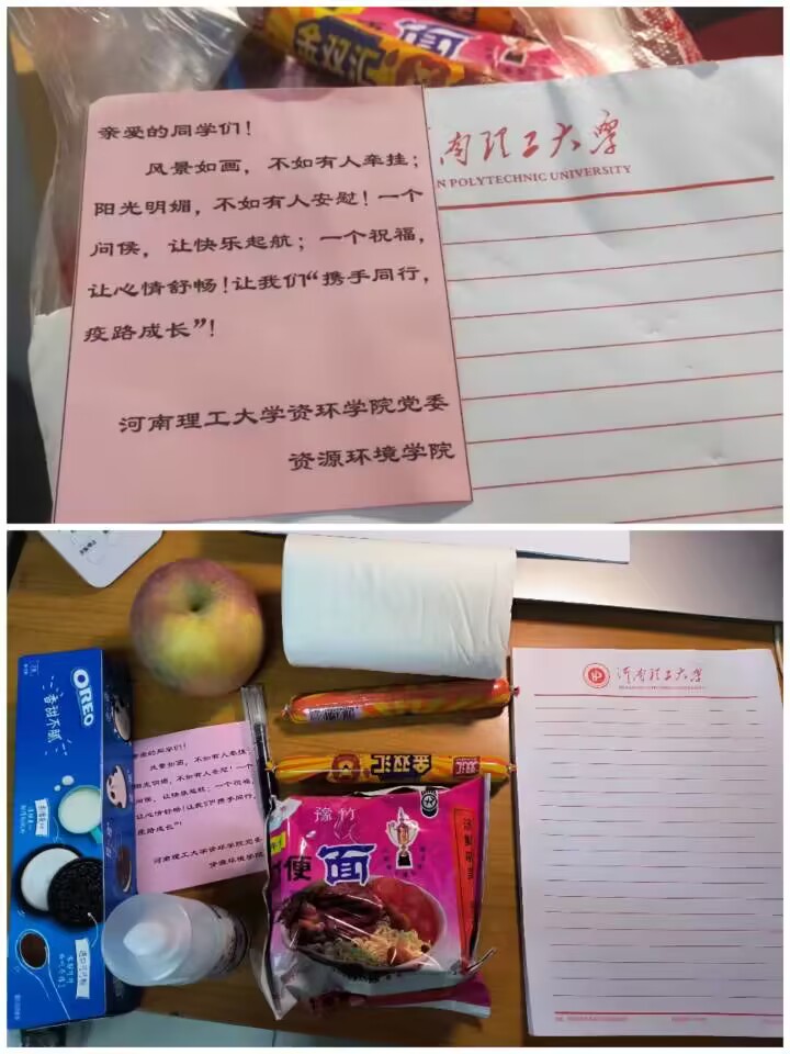 一直坚守在学校校园的教职工送去牛奶、方便面、面包等生活物品,为封控在学生宿舍的339名学生、宿舍楼管送上急需的防疫物资、生活物资和学习用品。学生们动情地表示,一声声慰问和一袋袋物资给他们带去了温暖的鼓励,也为他们注入了强劲的学习动力!