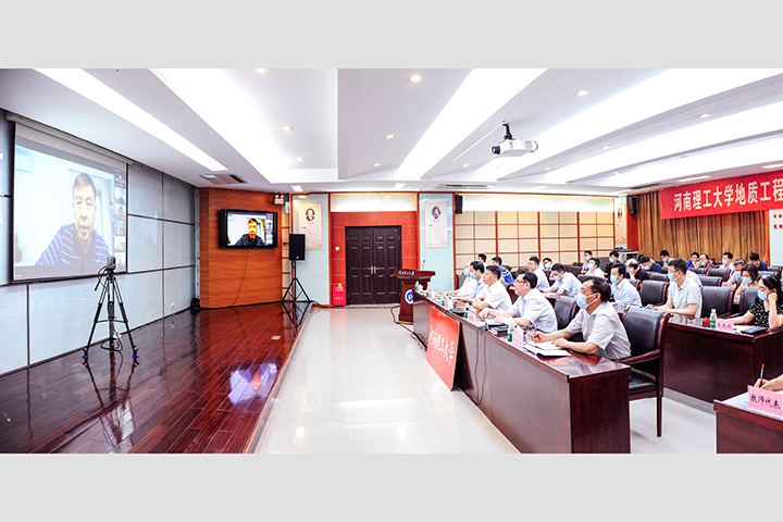 杨小林代表学校对各位专家的指导表示热烈欢迎。副校长沈记全从专业历史、学科建设、本科教育、人才培养质量方面介绍了地质工程专业概况,他表示,感谢各位专家远程指导,希望各位专家在考察期间多提宝贵意见和建议,学校将全面加深专业内涵建设,不断加大本科教学投入,提升人才培养质量。