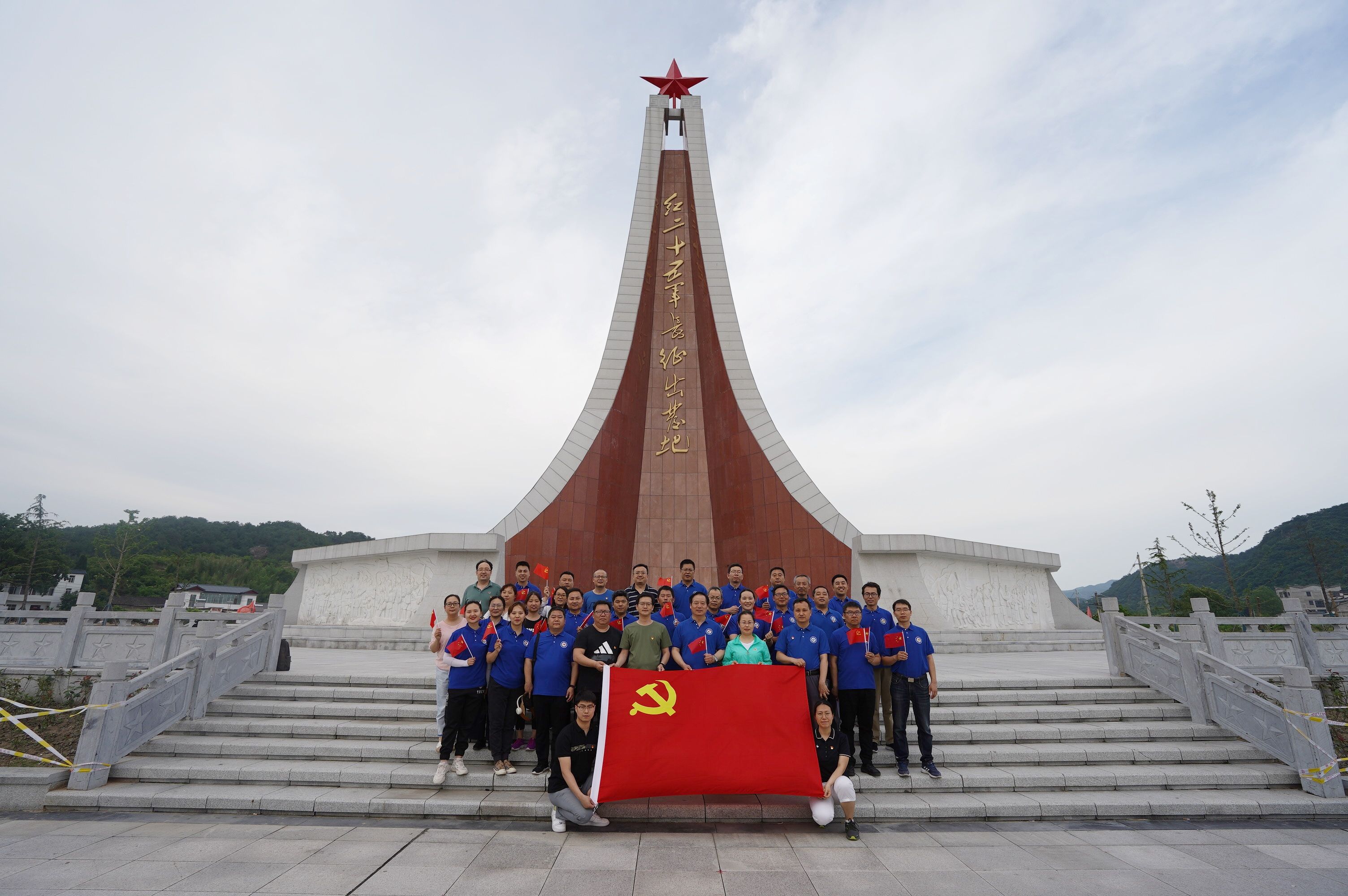 何家冲学院位于信阳市鸡公山东邻,罗山县铁铺乡。初夏的何家冲青山碧水、绿树掩映。1934年11月16日,红二十五军高举“中国工农红军北上抗日第二先遣队”的旗帜,正是在这里集结出发,离开鄂豫皖革命根据地,开始战略转移。经过艰苦卓绝的斗争,于1935年9月15日到达陕甘宁苏区,成为第一支到达陕北的红军长征部队,在红军长征史上写下光辉的篇章。在何家冲学院初心堂红二十五军军史馆,大家认真聆听讲解员讲解,学习历史事件、聆听红军故事,至深的感动涌上心间,哽在喉头、湿了眼眶。随后,大家穿上红军服,从长征的起点出发重走长征路,亲身体验革命先烈走过的足迹,深刻感悟这段厚重历史和红色精神。唱红歌、学精神,勇攀登、悟思想,在红二十五军军部旧址何氏祠前,大家饱含深情地重温入党誓词,似乎要用尽全力将一字一句都印刻在每一位党员的心里,践行在实际行动中。培训学习的第二天,大家到郝堂村学习了美丽乡村的振兴之路,感受国家、感受党的宏伟领导,学习人民、学习群众的智慧力量。岁月流转,时代变迁,作为一段历史,长征已渐渐远去,但作为精神丰碑,红二十五军在罗山和长征途中发生的斗争故事将永远熠熠生辉,激励着后人为建设祖国美好家园而努力奋斗。