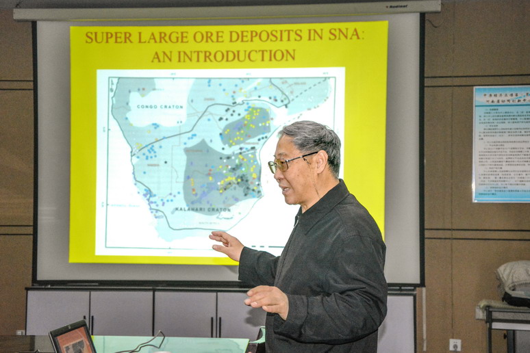 赵宝金对《欧美及南非的地质类本科教学现状及趋势》《南部非洲前寒武纪地质及超大型岩床》和《南部非洲成煤盆地的高盐度及酸水研究》作了详细讲解和交流。他从南非的经济、政治、地理环境出发,对南非高等教育系统、高校资源发展等方面与其他国家地质类本科教育作比较,阐述了地质类本科教学现状及趋势。随后,赵宝金以南部非洲地质及超大型矿床为主题简述了南非地质及矿产的概况,并详述了南非新生代盆地地质构造及分层状况、世界含铀砾型金矿地质矿化特征及找矿、南非矿山环境与水化学研究及现状、南非成煤盆地的高盐度及酸水研究等。