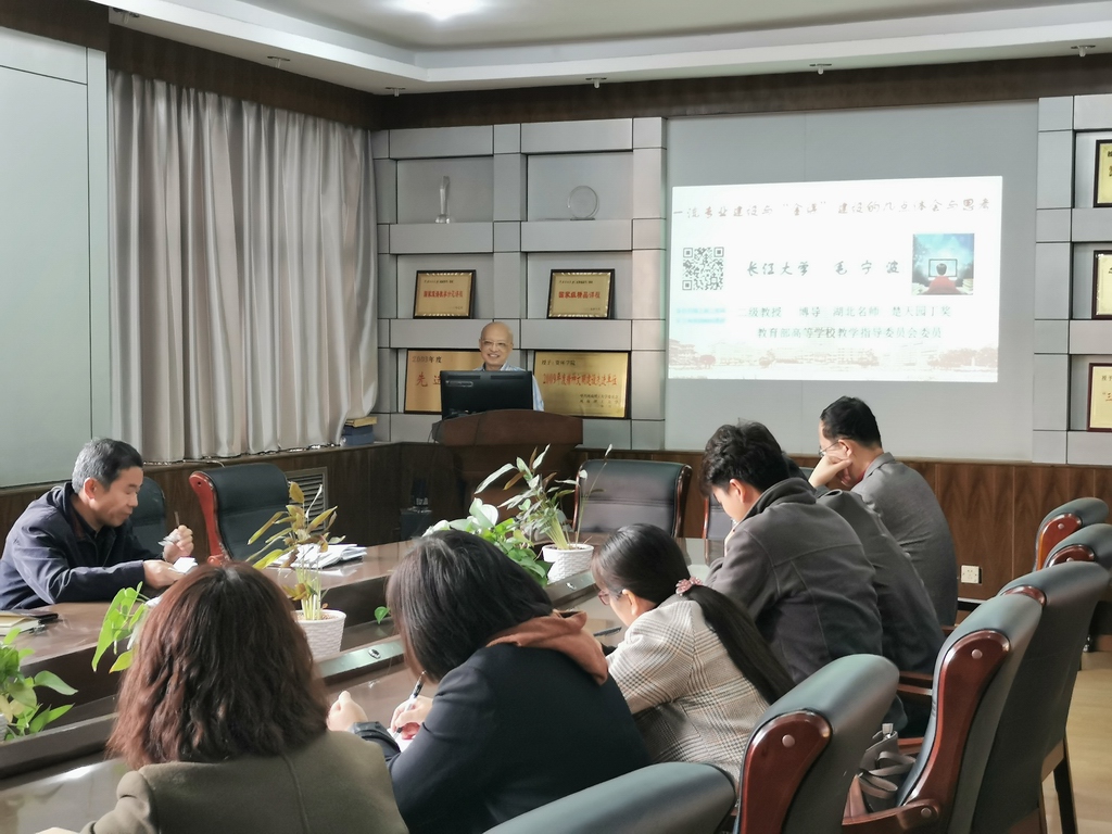 11月4日上午,应学院邀请,长江大学地球物理与石油资源学院毛宁波教授在资环楼二楼会议室作了题为《一流专业建设与“金课”建设的几点体会和思考》的报告。报告会由该院副院长郑德顺主持,各系室主任及三十余名教师共同聆听了本场报告。