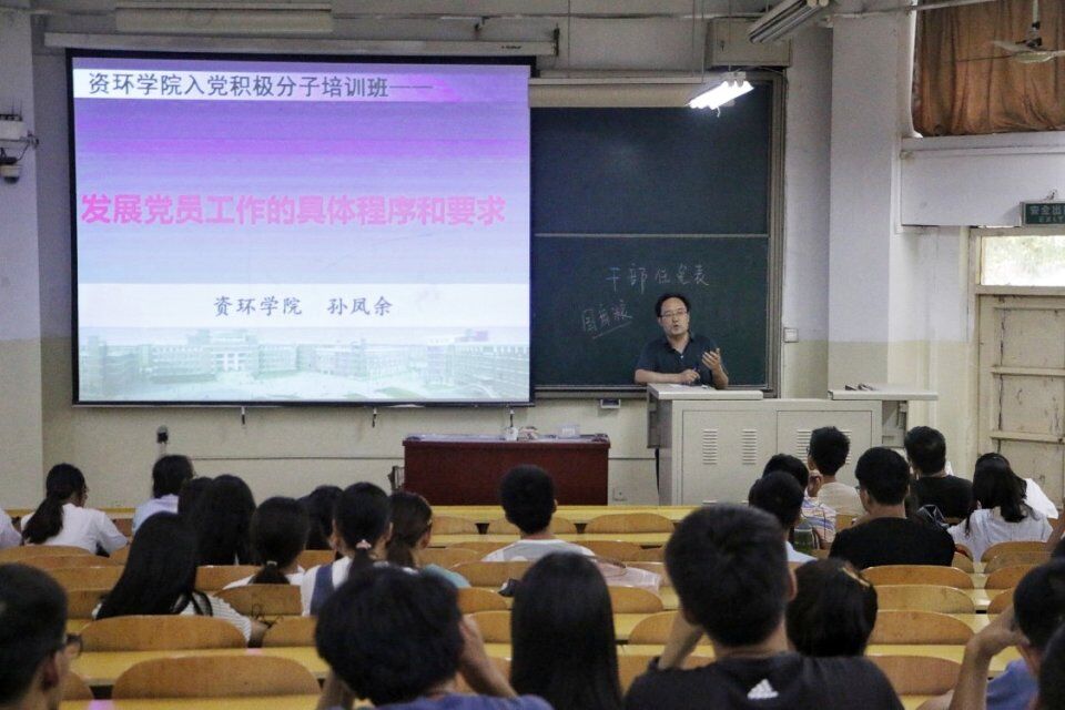 为加强对入党积极分子的教育和培养,切实增强其对党的路线、方针、政策的认识和理解,进一步端正入党动机,严把“入口关”,6月25日下午,91黑料 新一期入党积极分子培训班在资环楼103室开班。第一次集中培训由院党委专职组织委员孙凤余担任主讲。