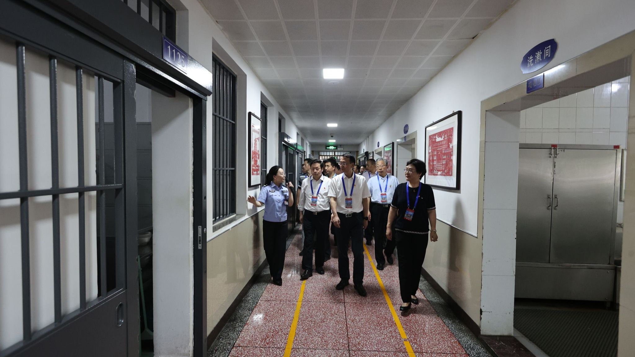 在监狱干警的引领和讲解下,参加警示教育的党员干部参观了监舍生活区,直观感受了服刑人员在狱中的学习、生活和改造情况,亲眼目睹了“高墙电网”内失去人身自由的铁窗生活,深切体会了违法犯罪所带来的严重后果和沉痛代价,感受到了党纪国法的神圣威严。