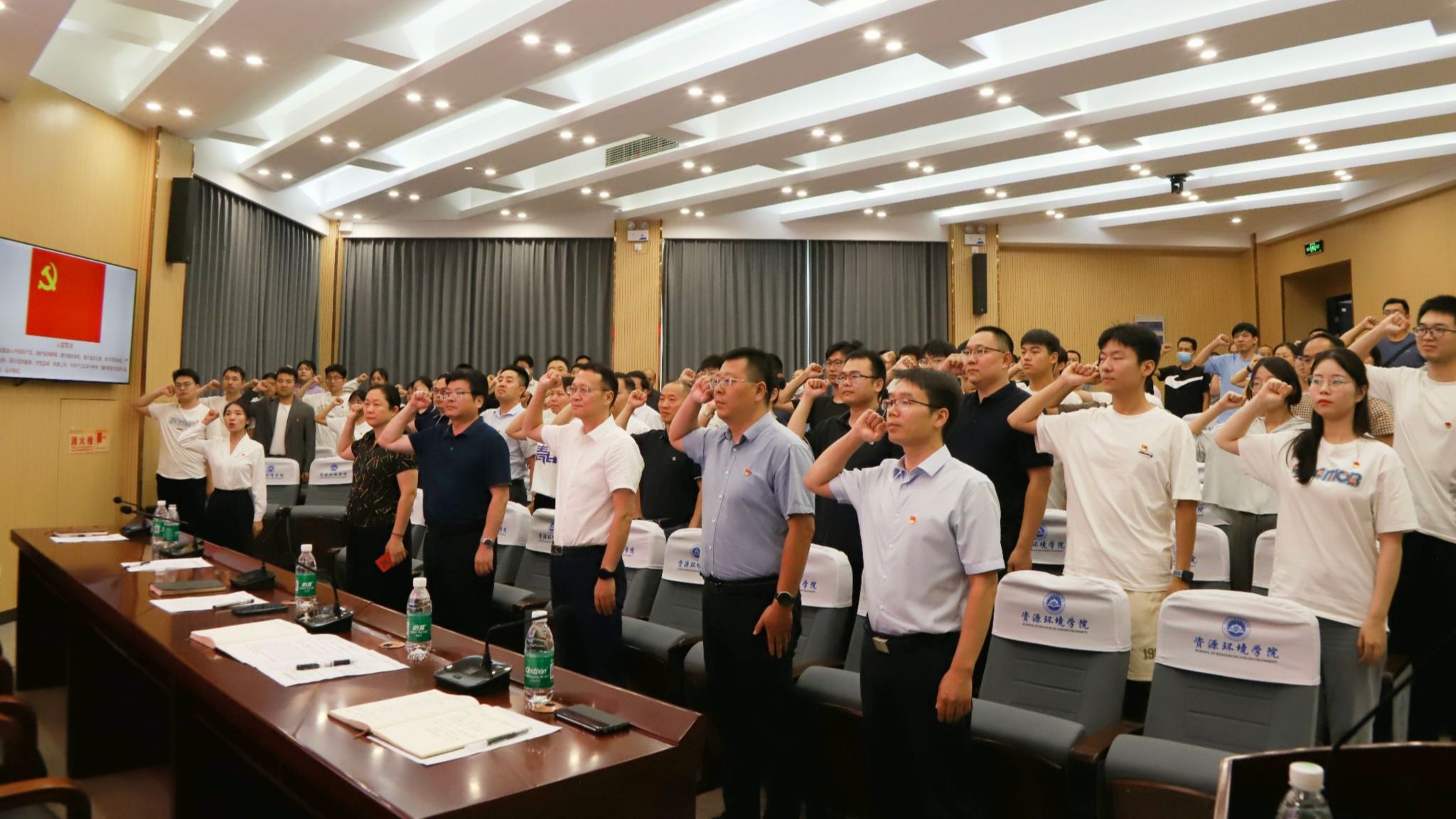 在资环楼第一学术报告厅举行“七一”表彰大会暨新党员入党宣誓活动,学院领导班子成员、党支部书记、优秀党员代表、新发展党员和积极分子、发展对象代表参加会议。会议由党委副书记孙付伟主持。
