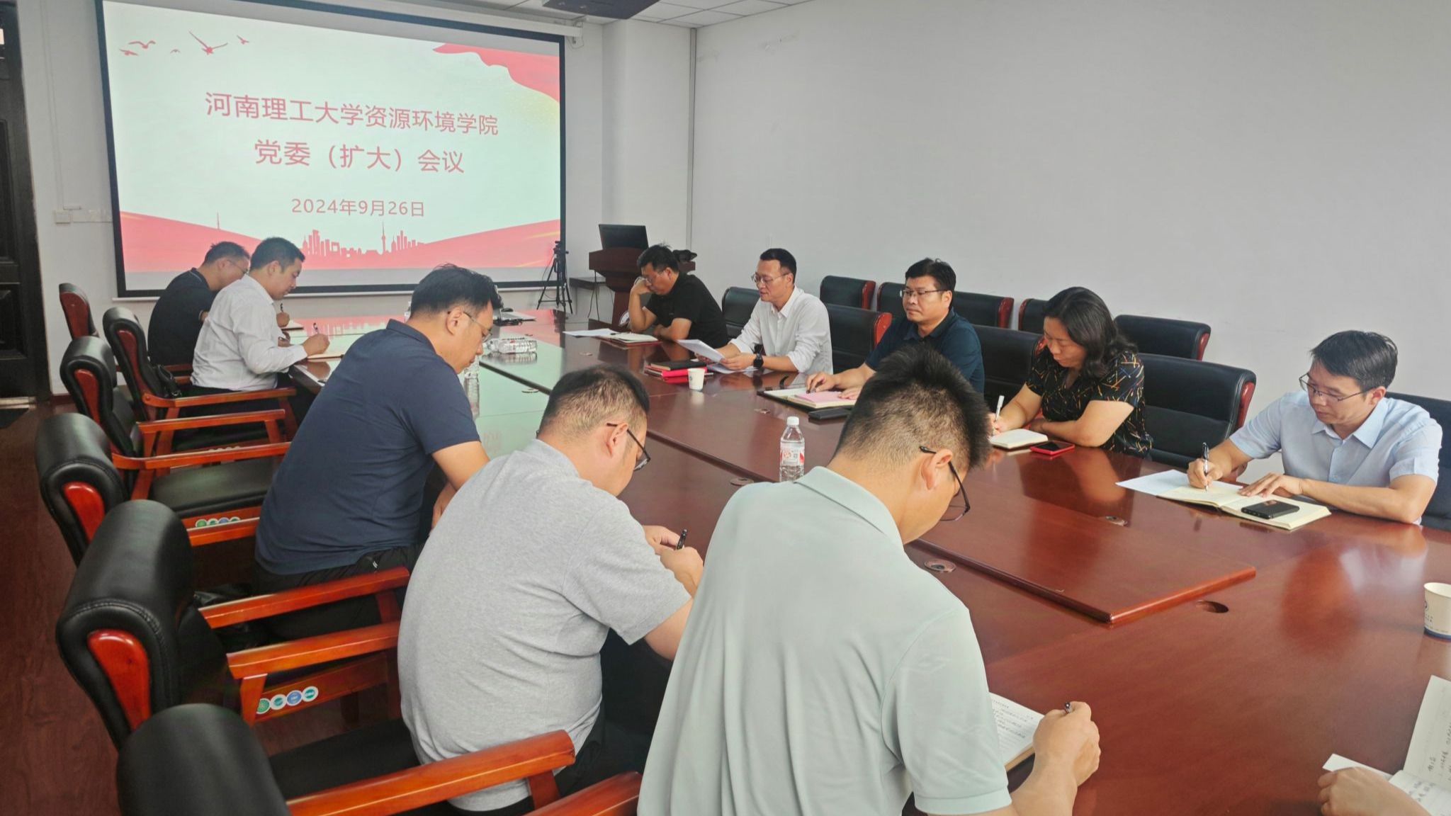 9月26日下午,学院在资环楼303会议室召开党委(扩大)会议,会议传达学习了习近平总书记对党纪学习教育作出的重要指示、中央党的建设工作领导小组会议及校党委扩大会议精神,总结了学院党纪学习教育工作,对推进学院党纪学习教育常态化长效化进行了安排部署。学院领导班子成员、各科室负责人、党支部书记参加会议,农工党代表列席会议。