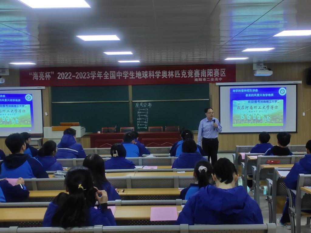 教师孙凤余带队赴南阳市第二完全学校高级中学开展科普和招生宣传活动。南阳市第二完全学校高级中学、南阳市第二中学校等学校100余名师生参加了活动。
