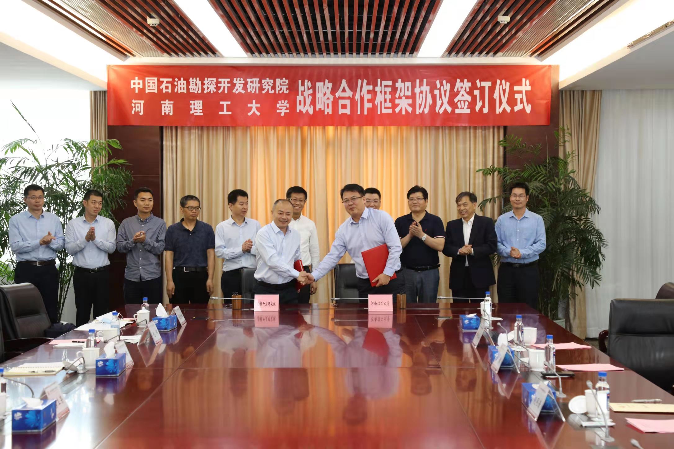 赵同谦在致辞中向长期以来关心支持学校建设和发展的中国石油勘探开发研究院各位领导表示衷心感谢,并简要介绍了学校的发展历程、办学特色、办学规模以及近年来所取得的主要成就。他指出,学校始终坚守服务能源工业的历史使命,秉承地矿特色,先后建成包括中原经济区煤层(页岩)气河南省协同创新中心、河南省非常规能源地质与开发国际联合实验室等多个与油气领域相关的科研平台,构筑了基础理论+应用基础理论+工程实践的研究体系,长期攻关我国难抽采煤层的煤层气地质评价方法和开发的关键理论与技术,相继在新疆阜康、沁水盆地低渗低压低产区、河南省构造煤发育区实现了煤层气开发技术和产量的多次历史性突破。希望双方在战略合作框架协议的指导下,在油、煤领域相互扶持,围绕高层次人才培养、科技创新与成果转化等工作,不断完善合作机制,深化融合发展,取得丰硕成果。