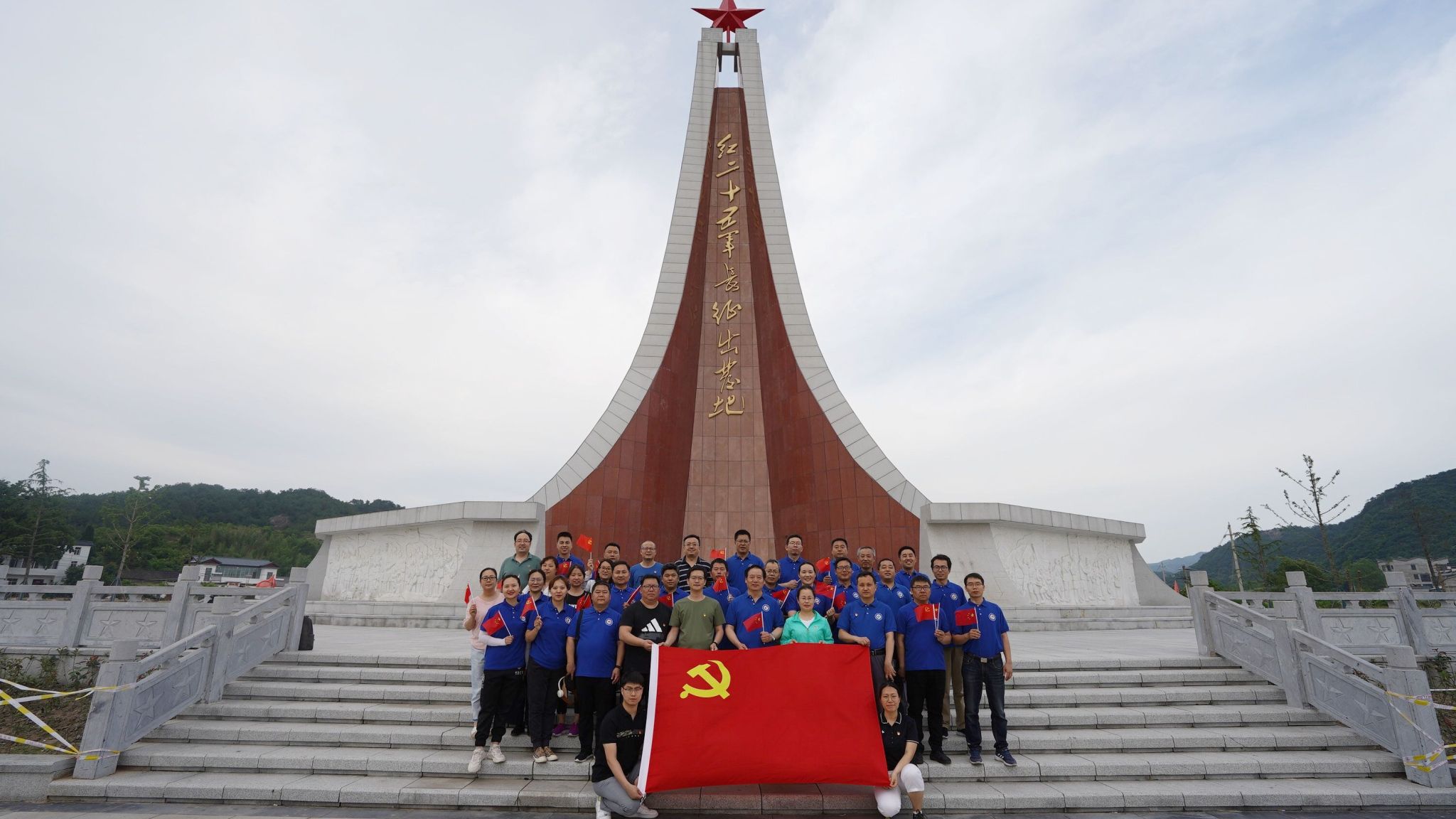 何家冲学院位于信阳市鸡公山东邻,罗山县铁铺乡。初夏的何家冲青山碧水、绿树掩映。1934年11月16日,红二十五军高举“中国工农红军北上抗日第二先遣队”的旗帜,正是在这里集结出发,离开鄂豫皖革命根据地,开始战略转移。经过艰苦卓绝的斗争,于1935年9月15日到达陕甘宁苏区,成为第一支到达陕北的红军长征部队,在红军长征史上写下光辉的篇章。在何家冲学院初心堂红二十五军军史馆,大家认真聆听讲解员讲解,学习历史事件、聆听红军故事,至深的感动涌上心间,哽在喉头、湿了眼眶。随后,大家穿上红军服,从长征的起点出发重走长征路,亲身体验革命先烈走过的足迹,深刻感悟这段厚重历史和红色精神。唱红歌、学精神,勇攀登、悟思想,在红二十五军军部旧址何氏祠前,大家饱含深情地重温入党誓词,似乎要用尽全力将一字一句都印刻在每一位党员的心里,践行在实际行动中。培训学习的第二天,大家到郝堂村学习了美丽乡村的振兴之路,感受国家、感受党的宏伟领导,学习人民、学习群众的智慧力量。岁月流转,时代变迁,作为一段历史,长征已渐渐远去,但作为精神丰碑,红二十五军在罗山和长征途中发生的斗争故事将永远熠熠生辉,激励着后人为建设祖国美好家园而努力奋斗。