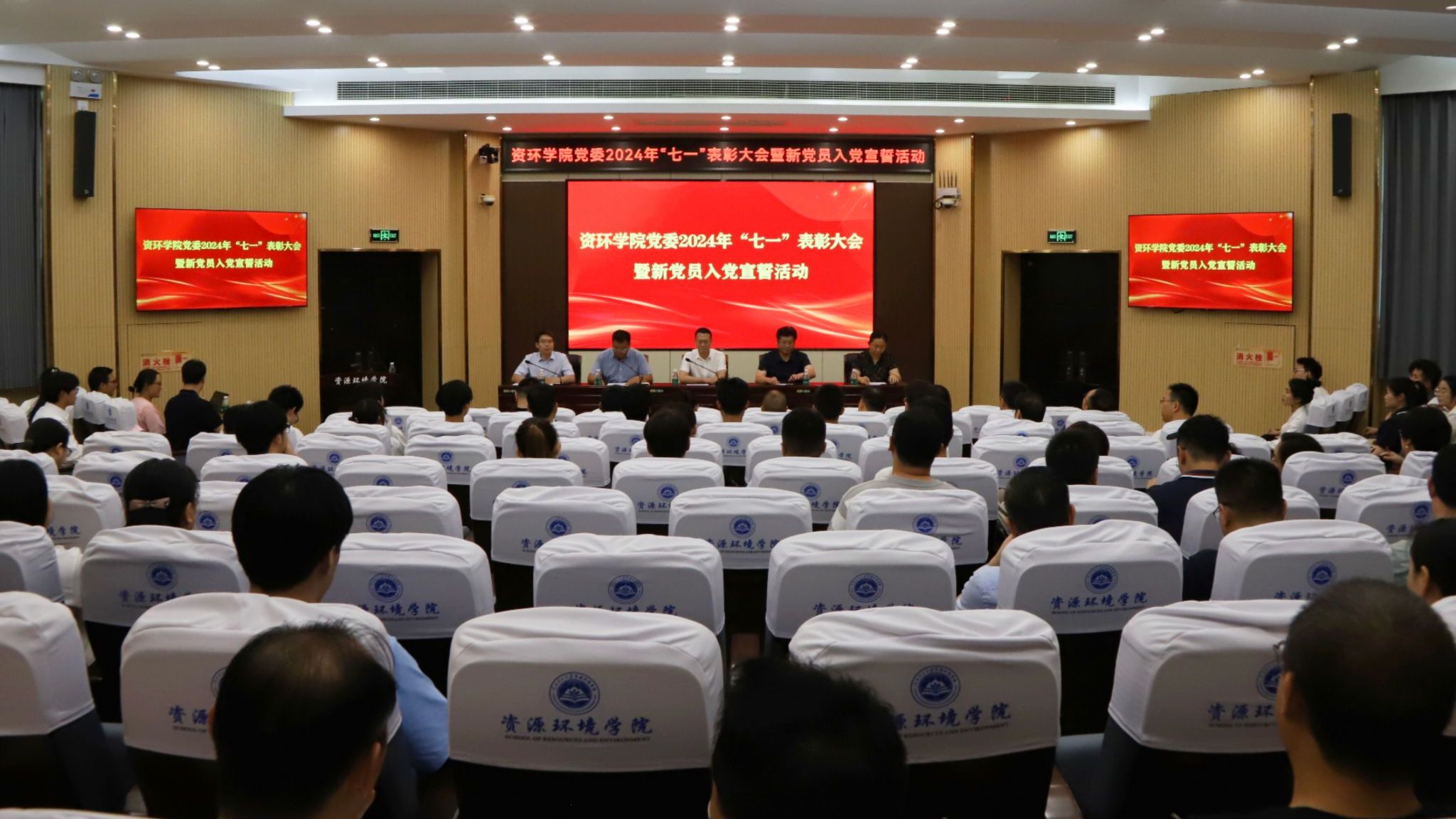 在资环楼第一学术报告厅举行“七一”表彰大会暨新党员入党宣誓活动,学院领导班子成员、党支部书记、优秀党员代表、新发展党员和积极分子、发展对象代表参加会议。会议由党委副书记孙付伟主持。