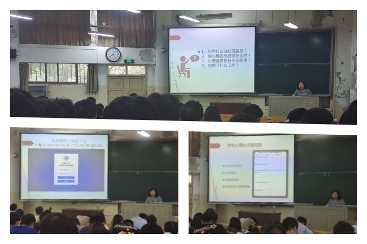 培训会上心理辅导员王静老师从目前大学生心理状况、心理委员的工作意义、工作职责、心理健康与咨询常识、如何做好心理委员工作这五个方面进行详细讲解。王静老师通过PPT内容的展示及阐述相关知识,使各班心理委员进一步明确班级心理委员和宿舍心理委员的工作内容,同时普及相关心理学知识,以及如何去发现和识别同学们的心理危机问题、如何通过心理健康大数据平台和心理晴雨表来向辅导员老师反馈寝室和班级同学信息,面对不同心理隐患时应当采取的不同心理援助等内容。