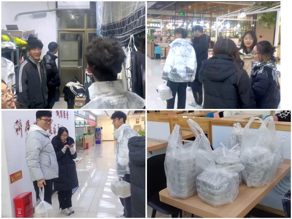学生会工作人员来到学生宿舍,将自己亲手制作的冬至水饺送到每位毕业班学子手中,将来自学院的温暖关怀传递给每位同学。