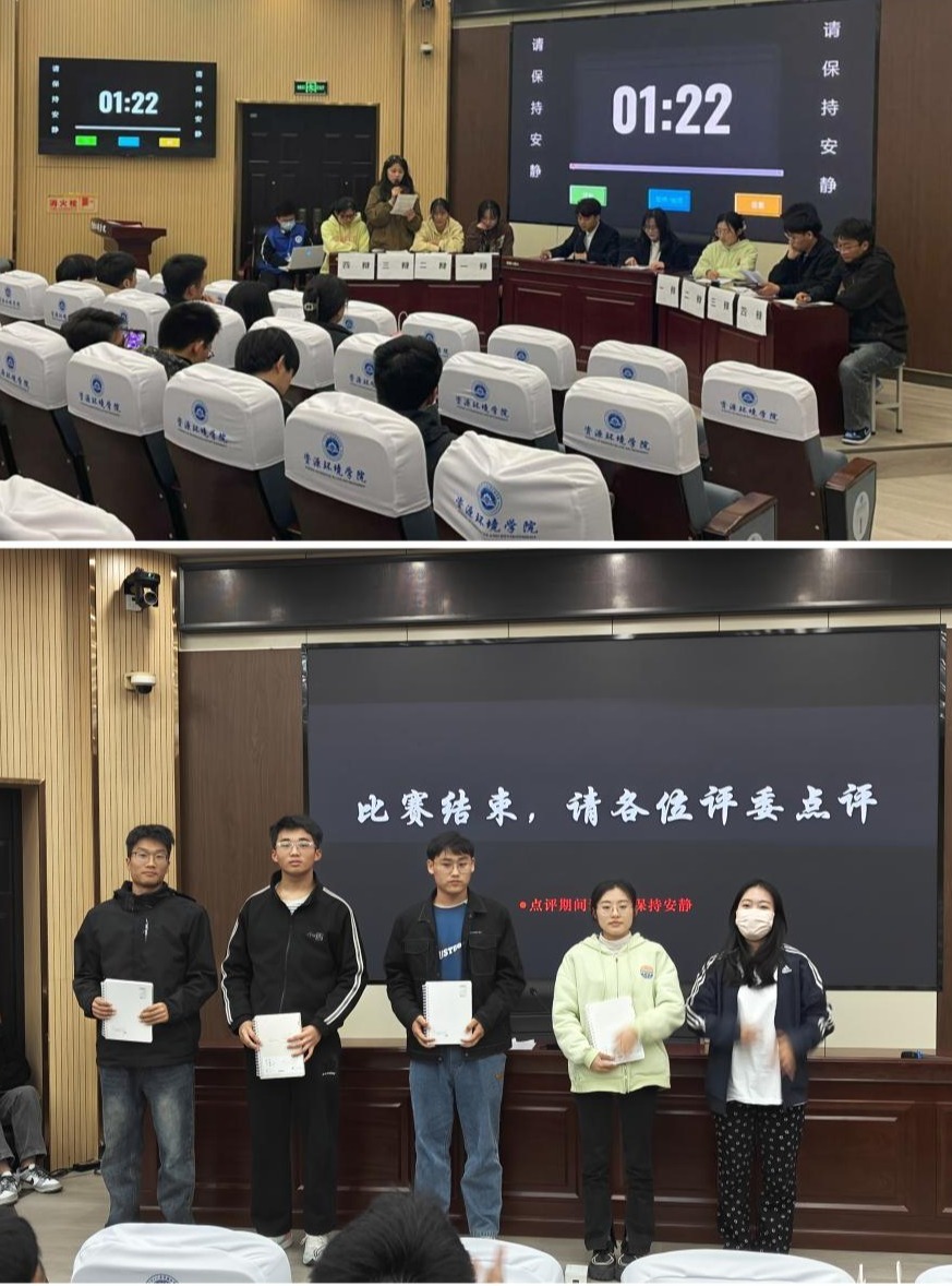 经过前期初赛的选拔,地质卓代表队和环境工程代表队凭借敏捷的思维、严谨的态度和较强的团队协作精神脱颖而出,顺利进入学院决赛。他们围绕“发疯文学是对现实的逃避还是反抗”这一辩题展开辩论。开篇立论环节,正反双方辩手陈述条理清晰,金句频出,阐释己方观点,解释论题内涵。驳论和质问环节,辩手们在激烈的思维碰撞中,一展“宏词论道,以说会友”的辩论风采。自由辩论环节,双方辩手更是针锋相对,你来我往,紧追对方的漏洞,或一针见血,或循循善诱,进一步为己方观点立足,现场气氛一次次被推向高潮。最后,在双方四辩极富感召力的总结下,辩论赛宣布结束。最终,地质卓代表队获一等奖、环境工程代表队获二等奖、勘察战略代表队和水文代表队获三等奖,余庭豪、江承轩、杜雨晗三位选手获“最佳辩手”称号。