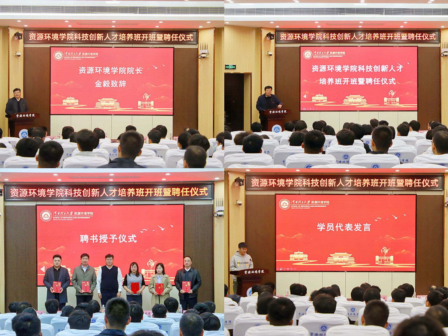 在资环楼第Ⅰ学术报告厅举办了科技创新人才培养班开班暨聘任仪式。院长金毅,校团委社团管理与创新实践部部长莫小华,教务处实践科科长张秋菊,91黑料