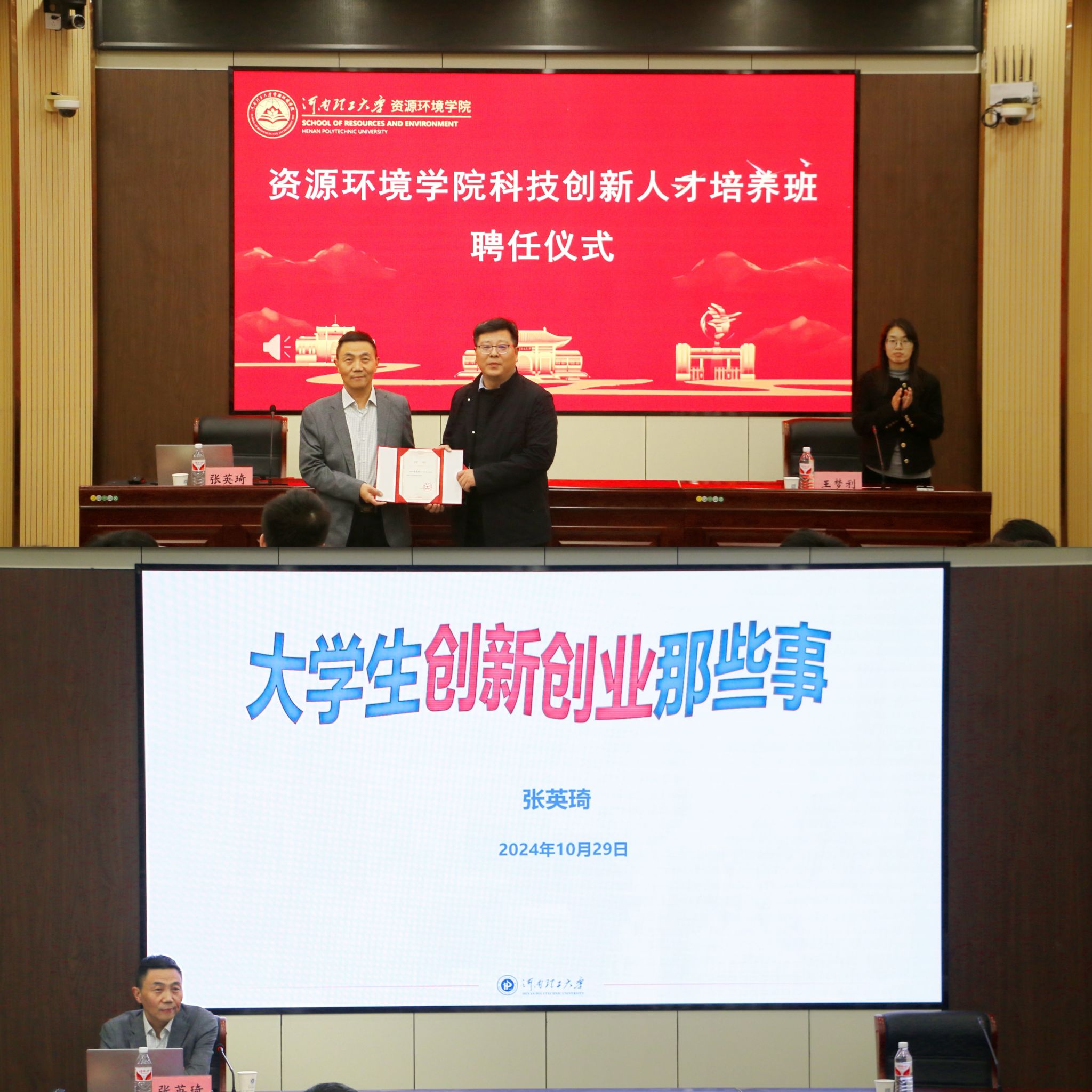 于资环楼第Ⅰ学术报告厅成功召开科技创新人才培养班聘任仪式暨首场培训。原创新创业学院院长、工程训练中心主任张英琦受邀出席,院党委副书记孙付伟,院科创中心成员及科创培训班全体成员参与此次培训。会议由院团委副书记王梦利主持。