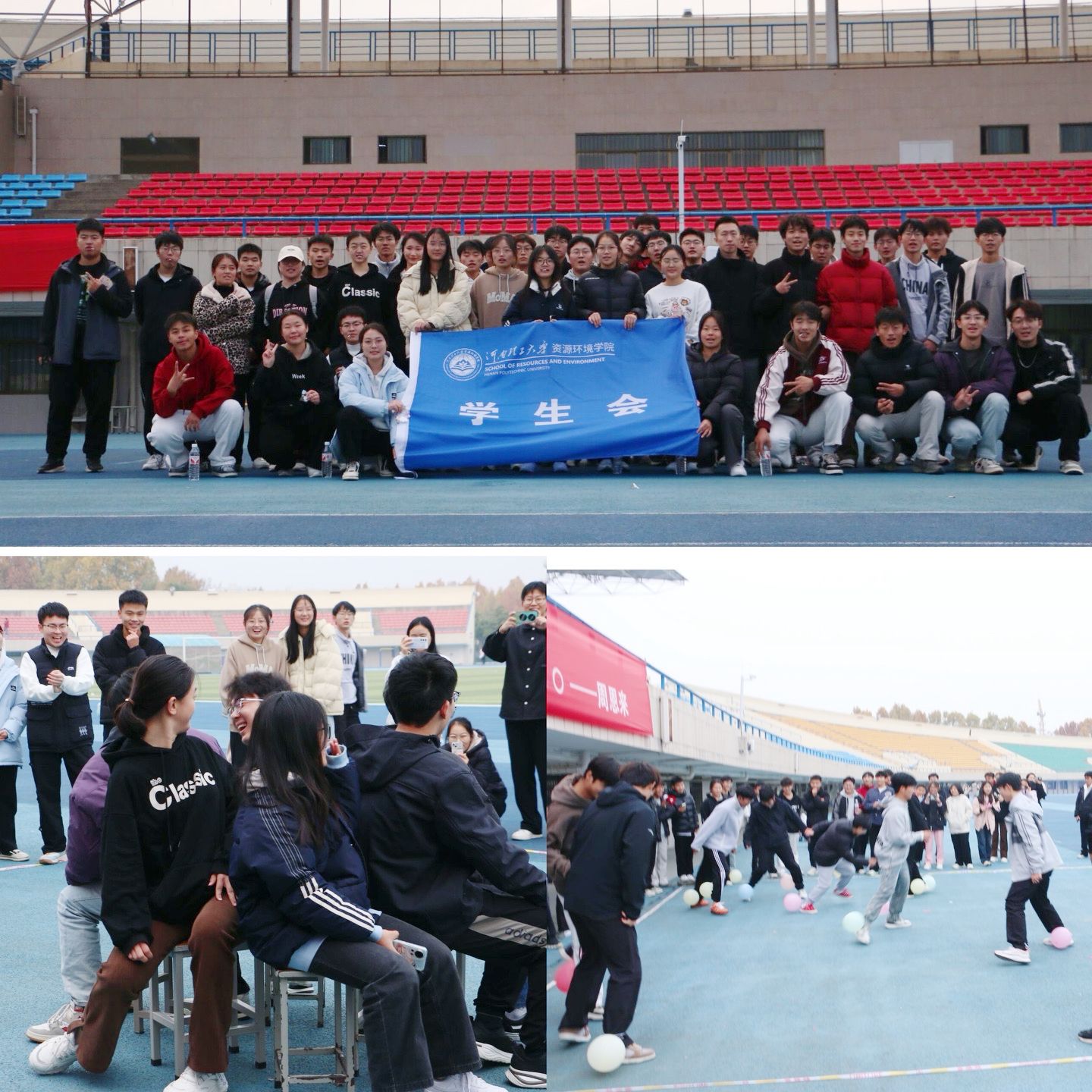 学生会在东体育场成功举办了第一届趣味运动会,学生会全体成员参加。