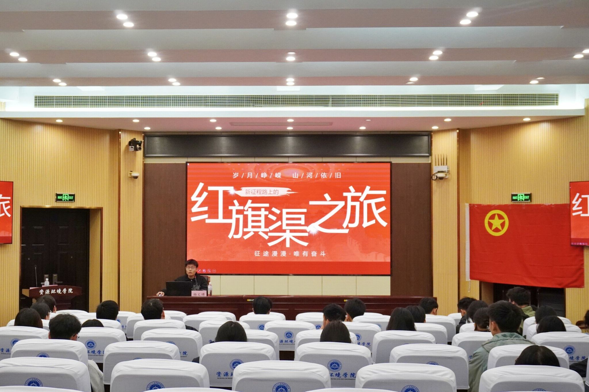 为深入学习贯彻党的二十大精神,引导青年学子坚定理想信念,3月8日晚,资环“青”年说宣讲团在院楼第Ⅰ学术报告厅举行主题宣讲活动。活动通过主题宣讲、影像展播、互动研讨相结合的形式,带领青年学子重温红色记忆,强化使命担当。