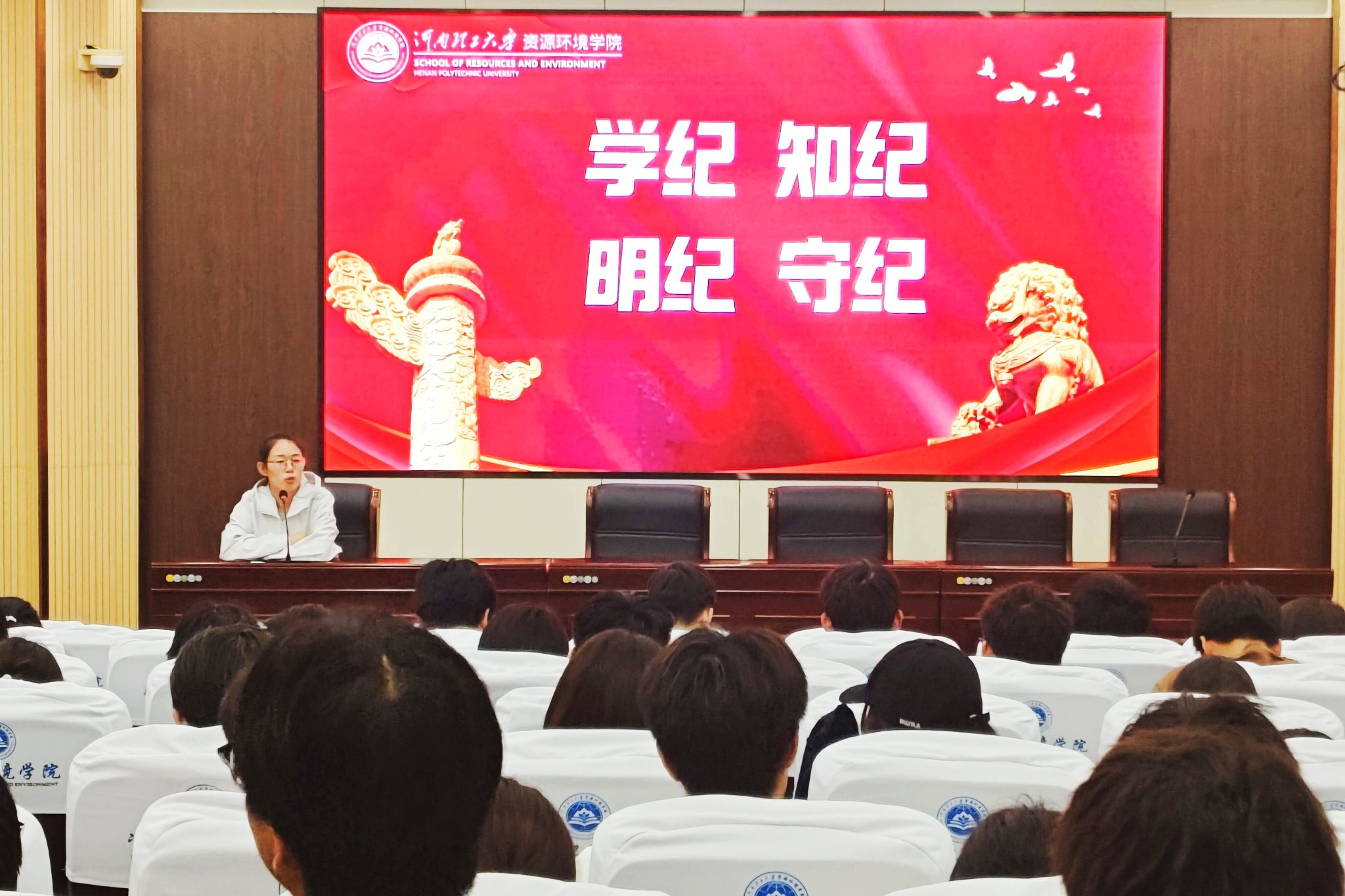 于5月22日晚在资环楼第Ⅰ学术报告厅组织召开专题座谈会。学院团委副书记王梦利以“学纪知纪明纪守纪”为主题,面向学生社团组织中党员、团员及党团积极分子开展专题教育,百余名青年骨干齐聚一堂,共话纪律建设。