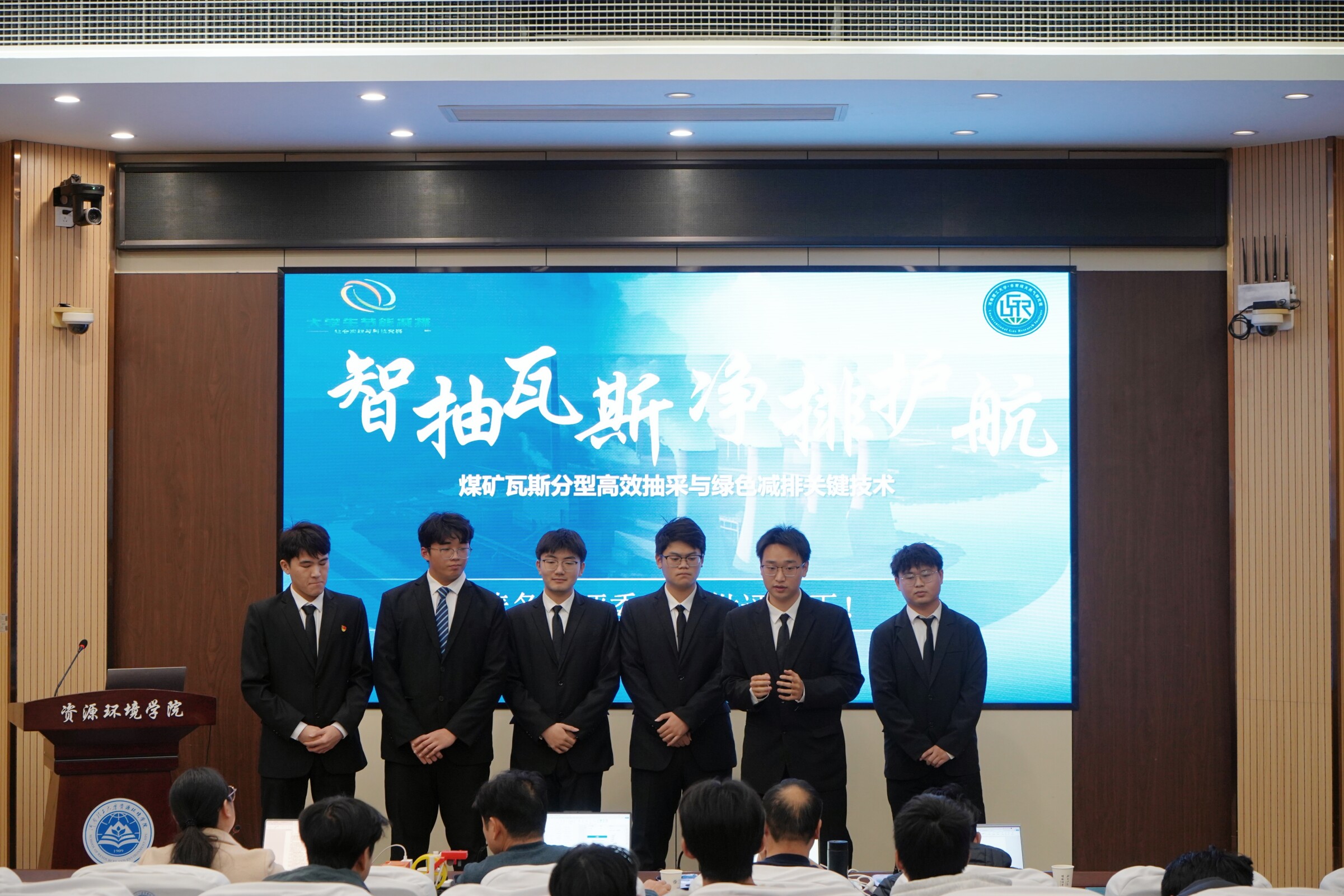 科创在第Ⅰ学术报告厅举办第十八届全国大学生节能减排社会实践与科技竞赛。比赛由杨欣檬主持,武俐、刘建民、张庆、王乾四位老师担任评委。