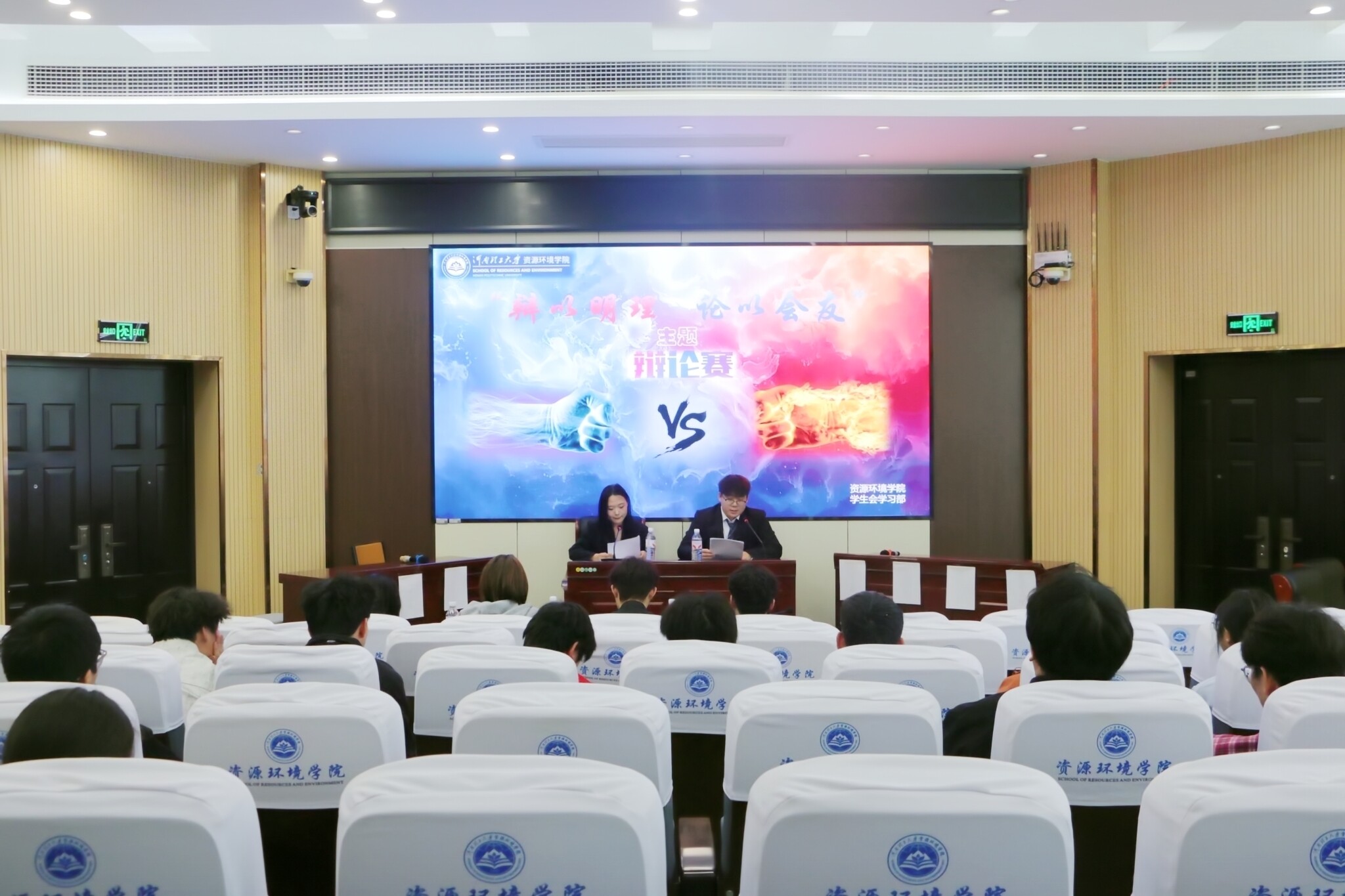 学生会于资环楼第Ⅰ学术报告厅成功举办“辩以明理,论以会友”辩论赛复赛,学院各年级学生组队参加比赛。